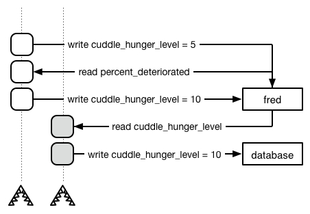你可以看到,这个对象只是一个花哨的引用单元。在多线程环境下,它也会受到同样的非确定性结果的影响。例如,如果两个线程试图用fred.cuddle_hunger_level = fred.cuddle_hunger_level + 1